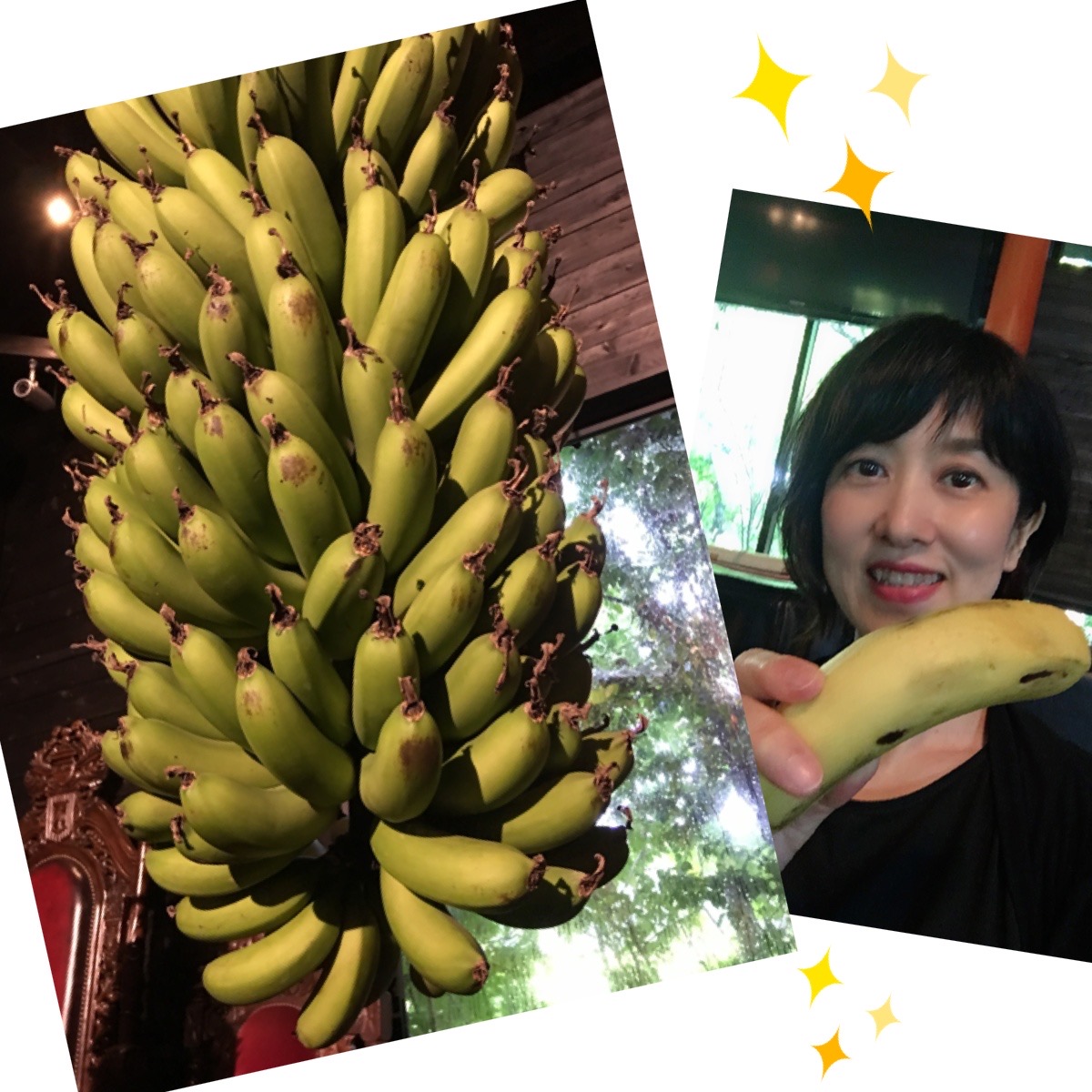 (↓私が持っているバナナは別の房から頂きました)